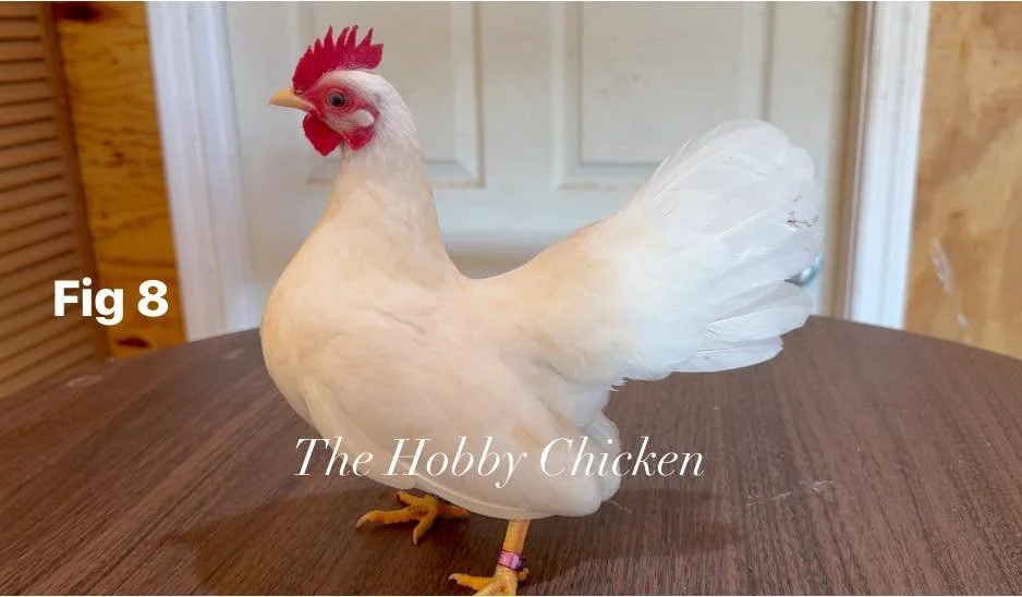 First and foremost, the standard calls for the wing, eye, and leg to fall on the same vertical line. In other words, if you were to draw a line from the top of the bird straight down through the eye, it should also run through the wing and leg. Be aware that some American and Traditional Serama carry their wings too far forward. If the wing is placed ahead of the leg, they can be docked points. While this forward placement is a desirable trait in the Ayam (which we’ll cover later in the series), it is not correct for the Traditional or American Serama.